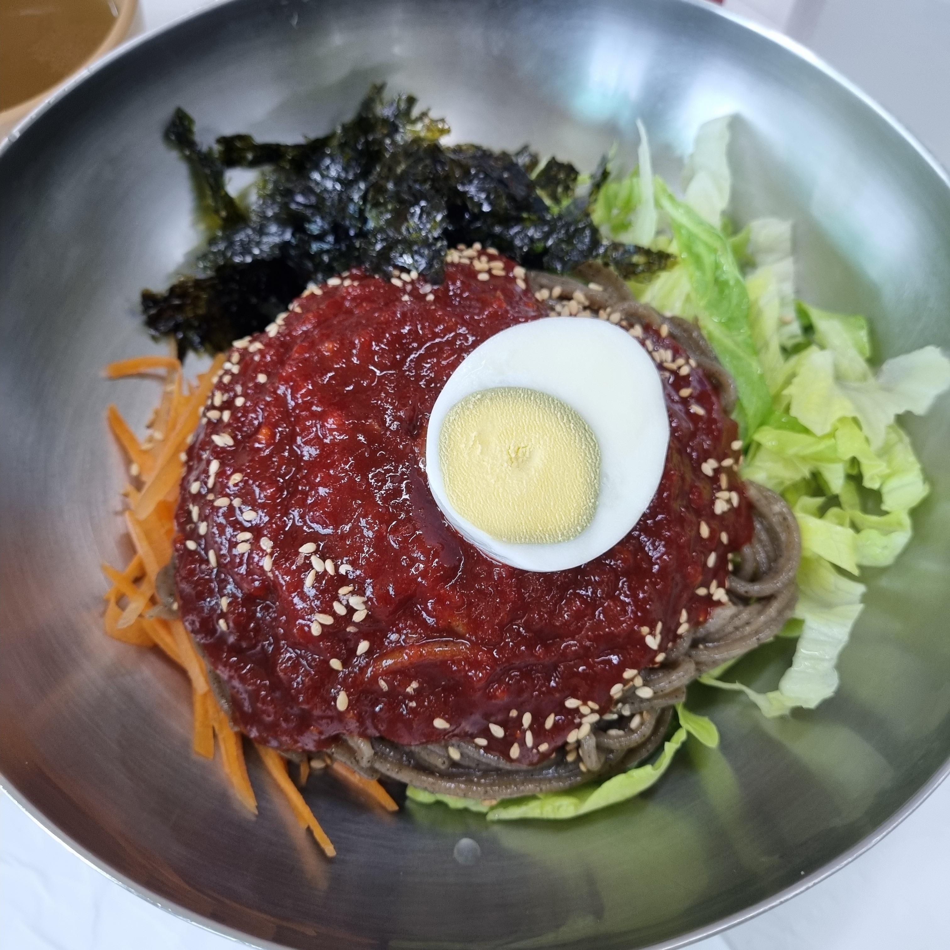 다양한 메뉴가 있었지만 나는 메밀전과 비빔 메밀 막국수를 시켰다.