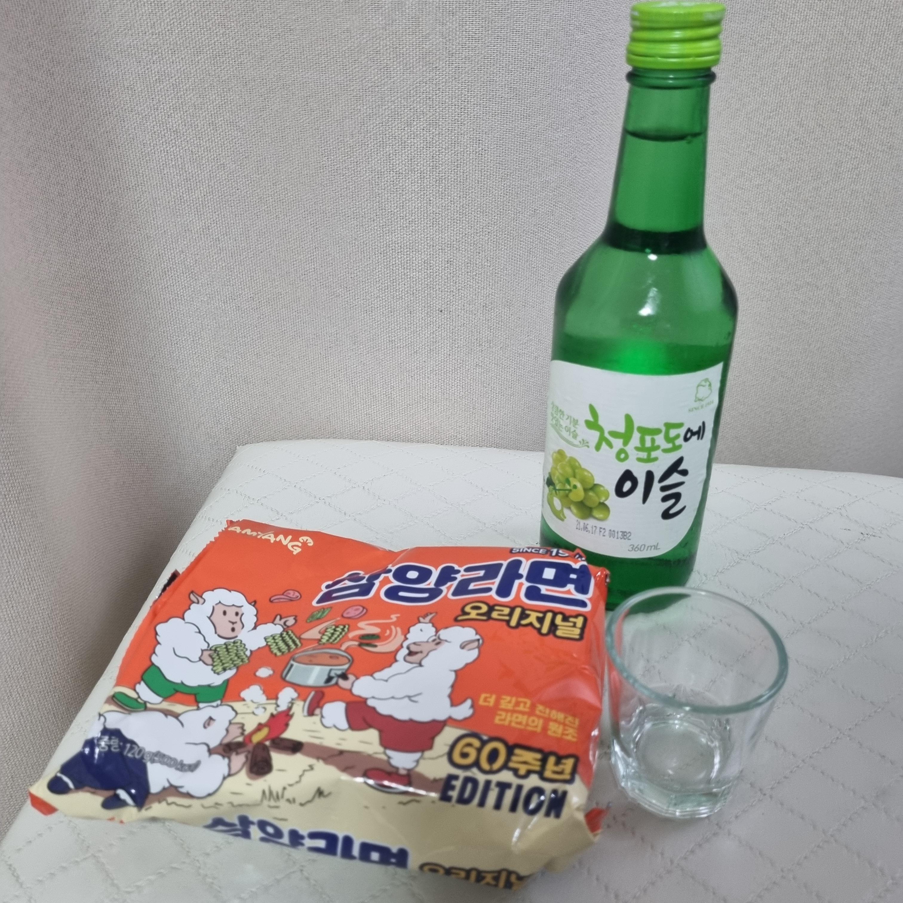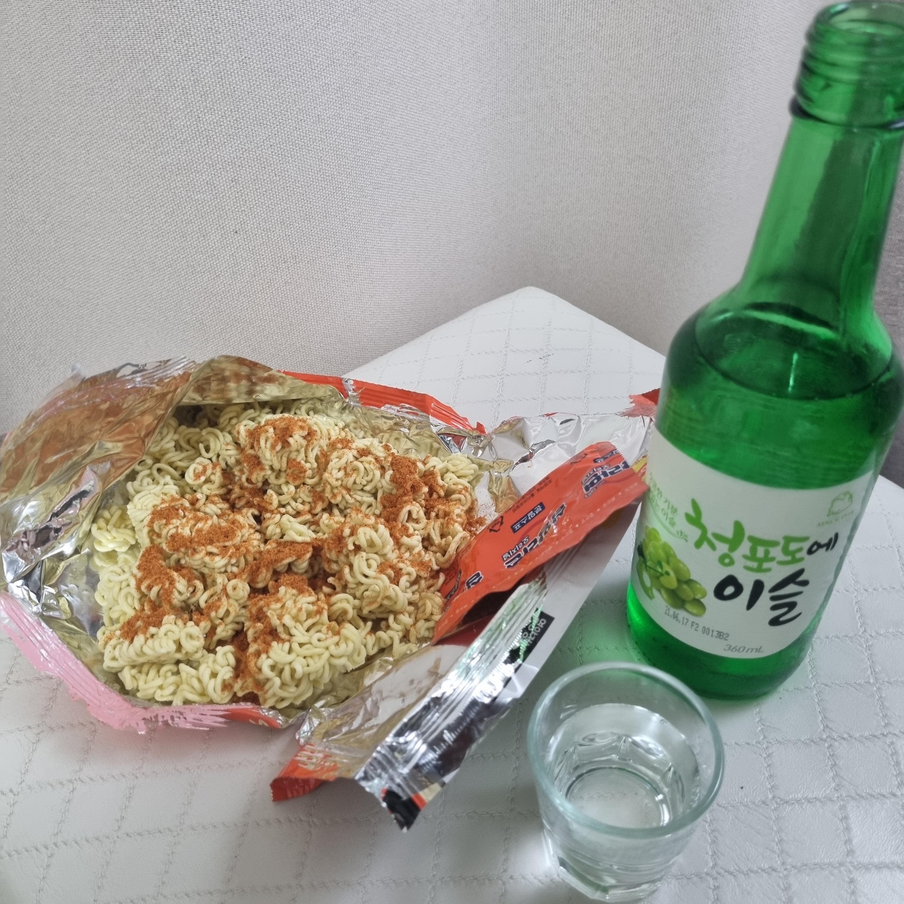 Gihoon is too poor to buy good "anjoo" so he just eat raw ramen.