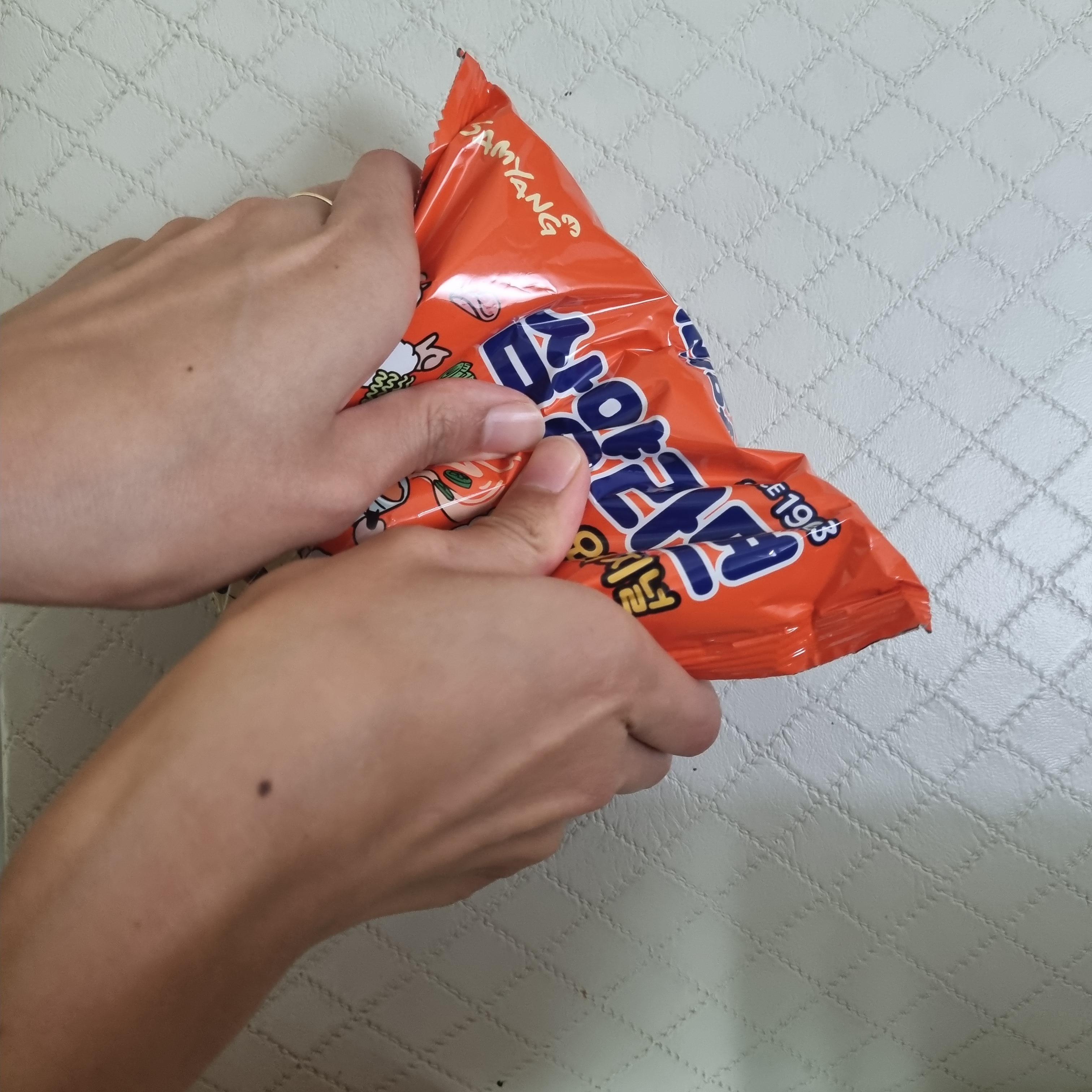 How to eat raw ramen 2. Break the ramen with your fist or break it with your fingers.